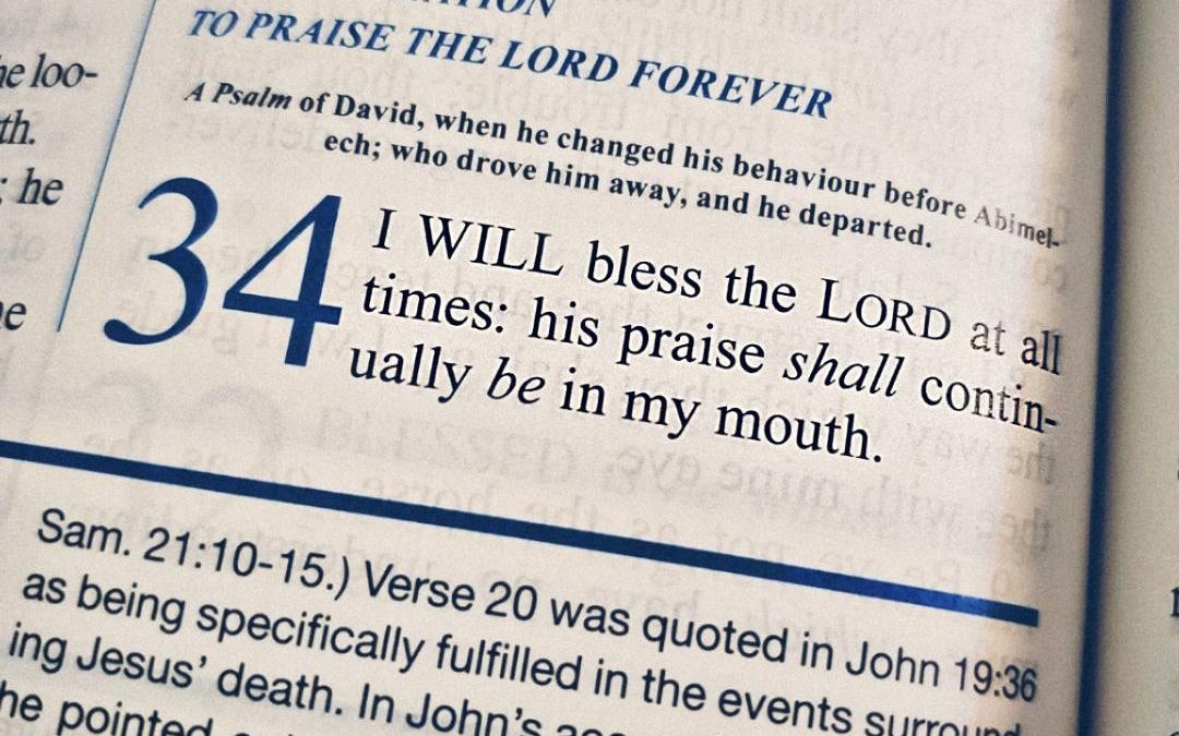 I will bless the LORD at all times: his praise shall continually be in my mouth. My soul shall make her boast in the LORD: the humble thereof, and be glad. O magnify the LORD with me, and let us exalt his name together. I sought the LORD, and he heard me, and delivered me from all my fears. They looked unto him, and were lightened: and their faces were not ashamed. This poor man cried, and the LORD heard him, and saved him out of all his troubles. The angel of the LORD encampeth round about them that fear him, and delivereth them. O taste and see that the LORD is good: blessed is the man that trusteth in him. O fear the LORD, ye his saints: for there is no want to them that fear him. The young lions do lack, and suffer hunger: but they that seek the LORD shall not want any good thing….The eyes of the LORD are upon the righteous, and his ears are open unto their cry. The face of the LORD is against them that do evil, to cut off the remembrance of them from the earth. The righteous cry, and the LORD heareth, and delivereth them out of their troubles. The LORD is nigh unto them that are of a broken heart; and saveth such as be of a contrite spirit. Many are the afflictions of the righteous: but the LORD delivereth him out of them all.